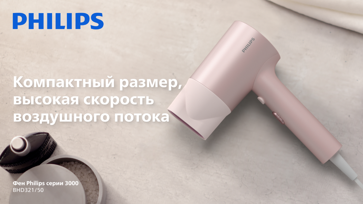 Фен мощностью 1600 Вт обеспечивает мощный поток воздуха и оптимальную температуру, что позволяет быстро и эффективно создать желаемую прическу.