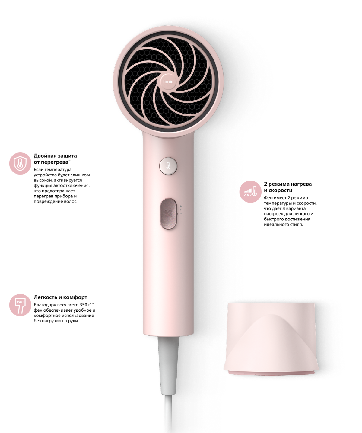 Мощная система ионизации генерирует до 30 миллионов ионов за один сеанс сушки, усиливая блеск волос. Наслаждайтесь гладкими и сияющими волосами без эффекта пушистости.