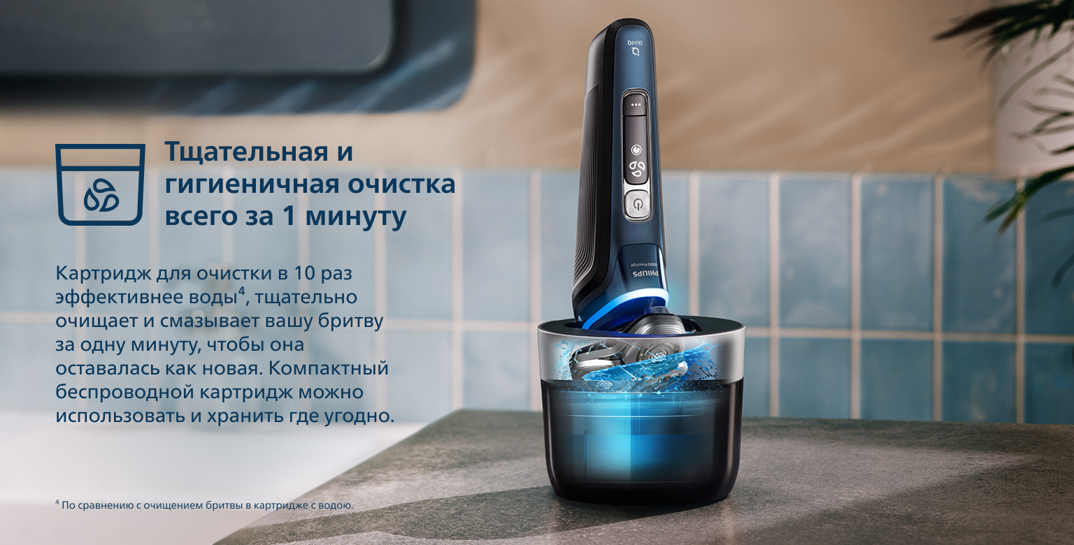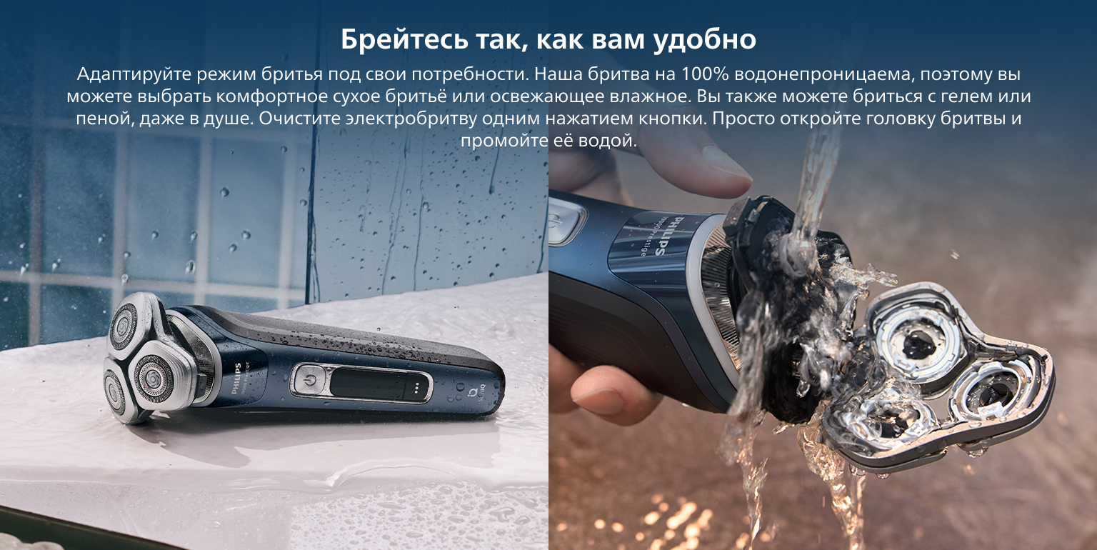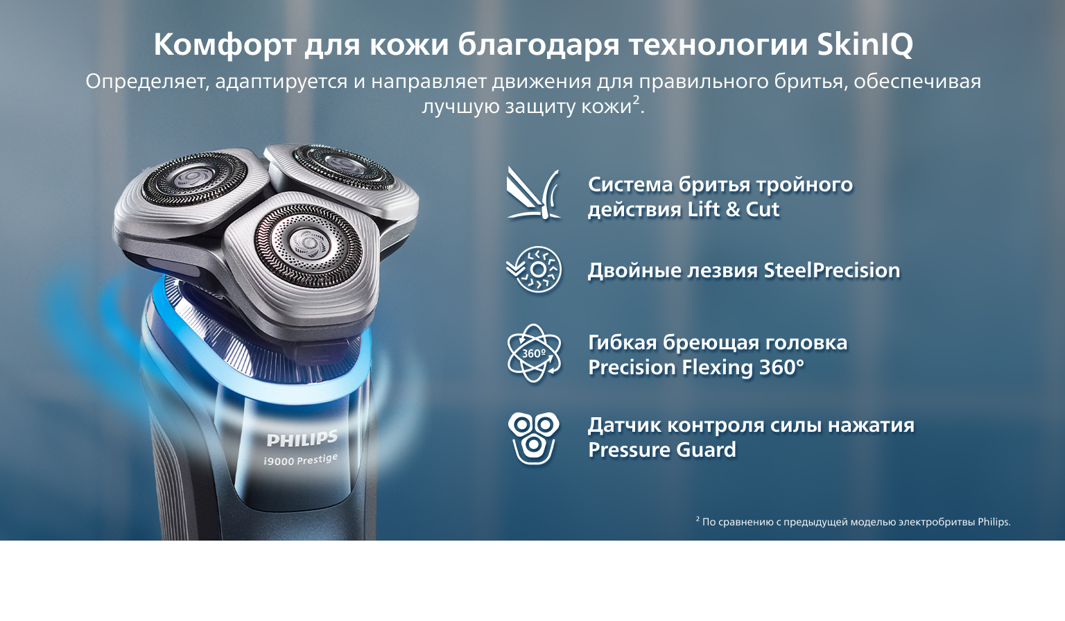 Полностью гибкие и компактные бреющие головки со специальными рельефами для бережного натяжения кожи динамически адаптируются к изгибам вашего лица. Головки обеспечивают постоянный контакт с кожей с большей точностью на 20%, чтобы захватить волоски на сложных участках шеи и под носом.