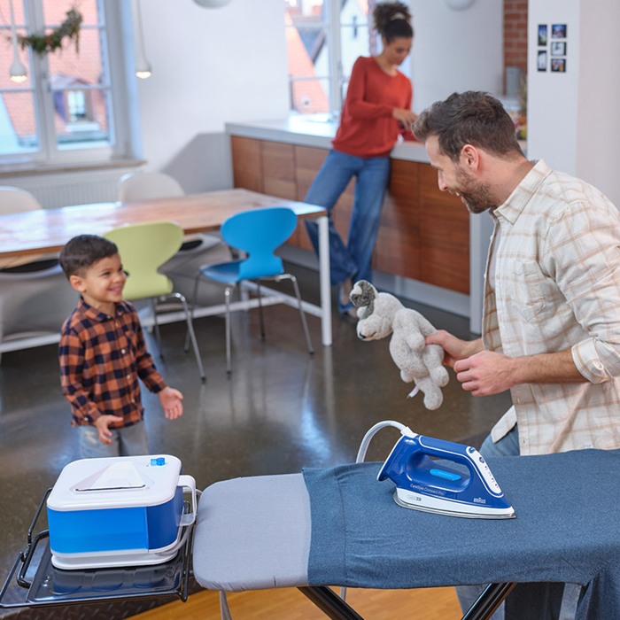 С BRAUN IS2565BL вы сможете дополнительно экономить 50% вашего времени и свободного пространства в доме*. Эта гладильная система отличается уникальной вертикальной формой, основа которой может просто разместиться на небольшом участке площадью в один лист бумаги А4. Таким образом она будет занимать совсем немного свободного места, а ее хранение станет максимально удобным.