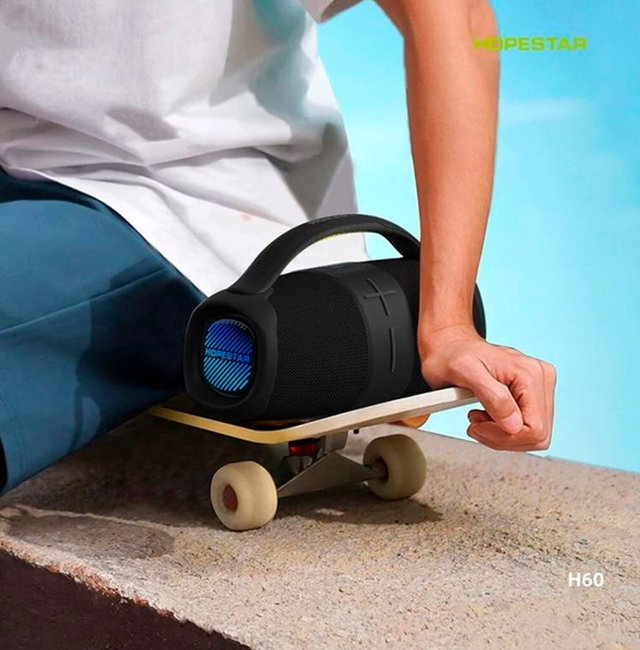 HOPESTAR H60 є елегантною і функціональною бездротовою колонкою, яка покликана збагатити ваш звуковий простір якісним і потужним звуком. Він ідеально підходить для різних сценаріїв використання, будь то вечірки на свіжому повітрі, домашні зустрічі з друзями або просто насолоду улюбленою музикою у гарній компанії.