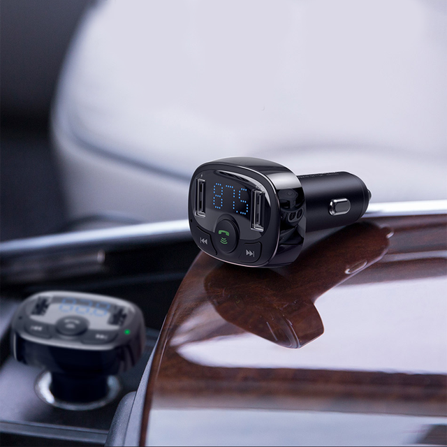 Baseus T typed Bluetooth MP3 поєднує в собі функції FM-трансмітера і автомобільного зарядного пристроя. Він забезпечує бездротову передачу сигналу через радіочастоту на колонки вашого автомобіля. З його допомогою ви зможете відтворювати музику зі смартфона або USB-накопичувача на акустичну систему, встановлену в автомобілі. Два порти USB дають можливість одночасно заряджати до двох пристроїв.