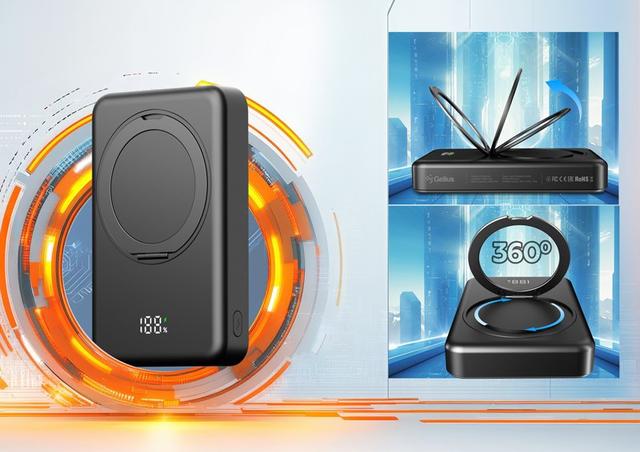 Особливу зручність повербанку надає вбудована підставка-кільце, що обертається на 360 градусів. Вона дозволяє зафіксувати смартфон у будь-якому положенні — вертикальному чи горизонтальному.