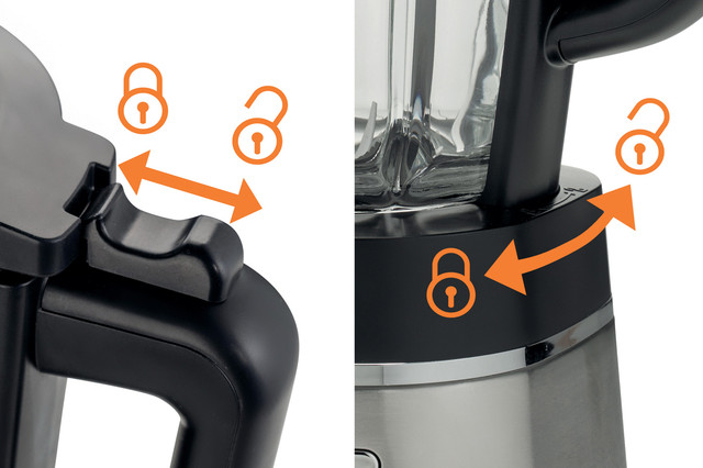 Встановіть і поверніть її в потрібне положення, щоб відразу розпочати подрібнення, а для запобігання утворенню бризок просто заблокуйте кришку. Подвійна система захисту для комфортного й безпечного приготування страв, хоч який рецепт ви виберете.