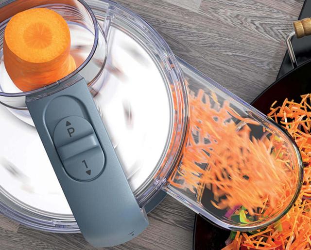 Ємність робочої чаші для подрібнення або змішування становить 1,3 л. Але ви не обмежені місткістю — використовуйте Express Serve для приготування продуктів, натирайте та нарізайте їх прямо на тарілку або на сковороду.