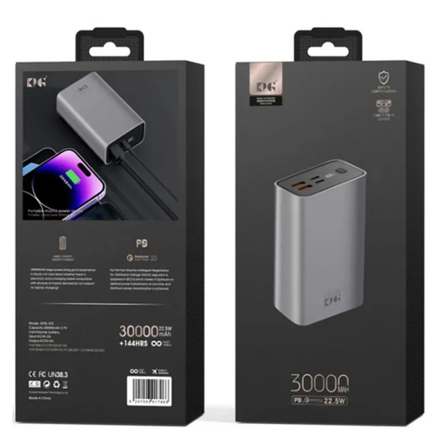 Повербанк обладнаний кількома портами, що дає змогу одночасно заряджати кілька ґаджетів без втрати потужності. Він сумісний із більшістю сучасних пристроїв, забезпечуючи універсальність і комфорт використання. Завдяки оптимальному співвідношенню ємності та швидкості заряджання, KPG-312 стане надійним помічником у дорозі, подорожі або на роботі.