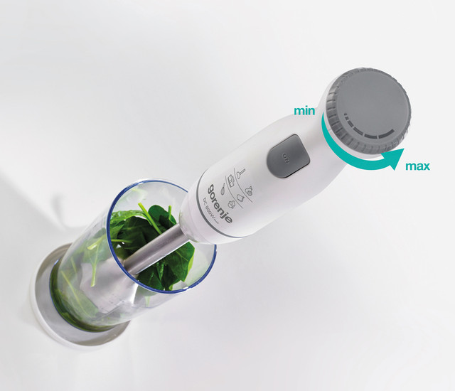 Занурювальний блендер Gorenje HBC804QW стане вашим надійним помічником на кухні. Обладнаний DC-двигуном потужністю 800 Вт, він без зусиль справляється з будь-якими завданнями: від збивання вершків до подрібнення горіхів. Плавне регулювання швидкості дає змогу налаштувати інтенсивність роботи під ваші потреби, забезпечуючи ідеальне змішування, подрібнення та змішування продуктів. Втілюйте будь-які рецептури, довіривши створення текстур Gorenje.
